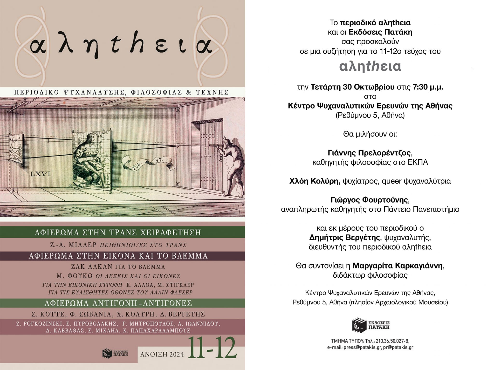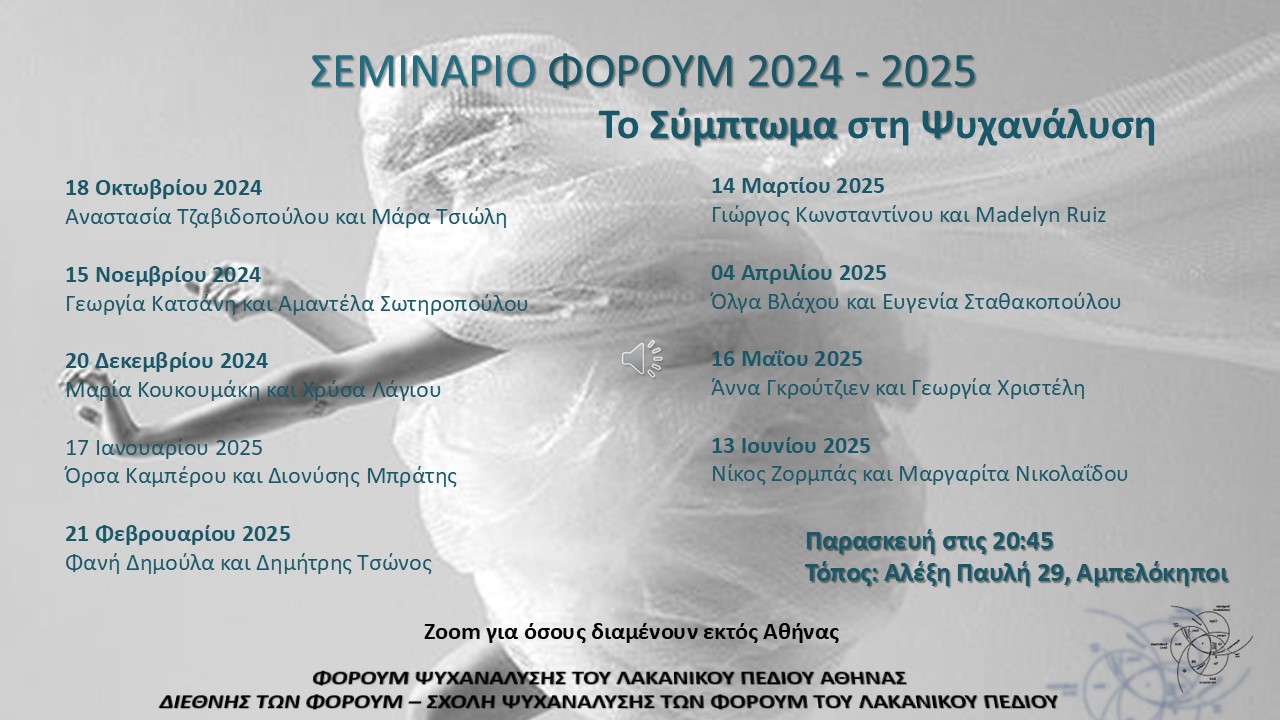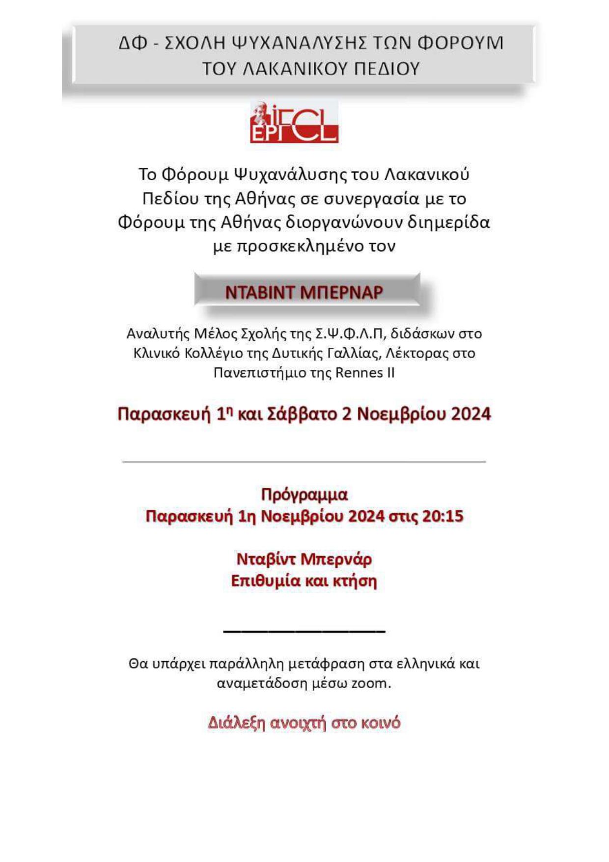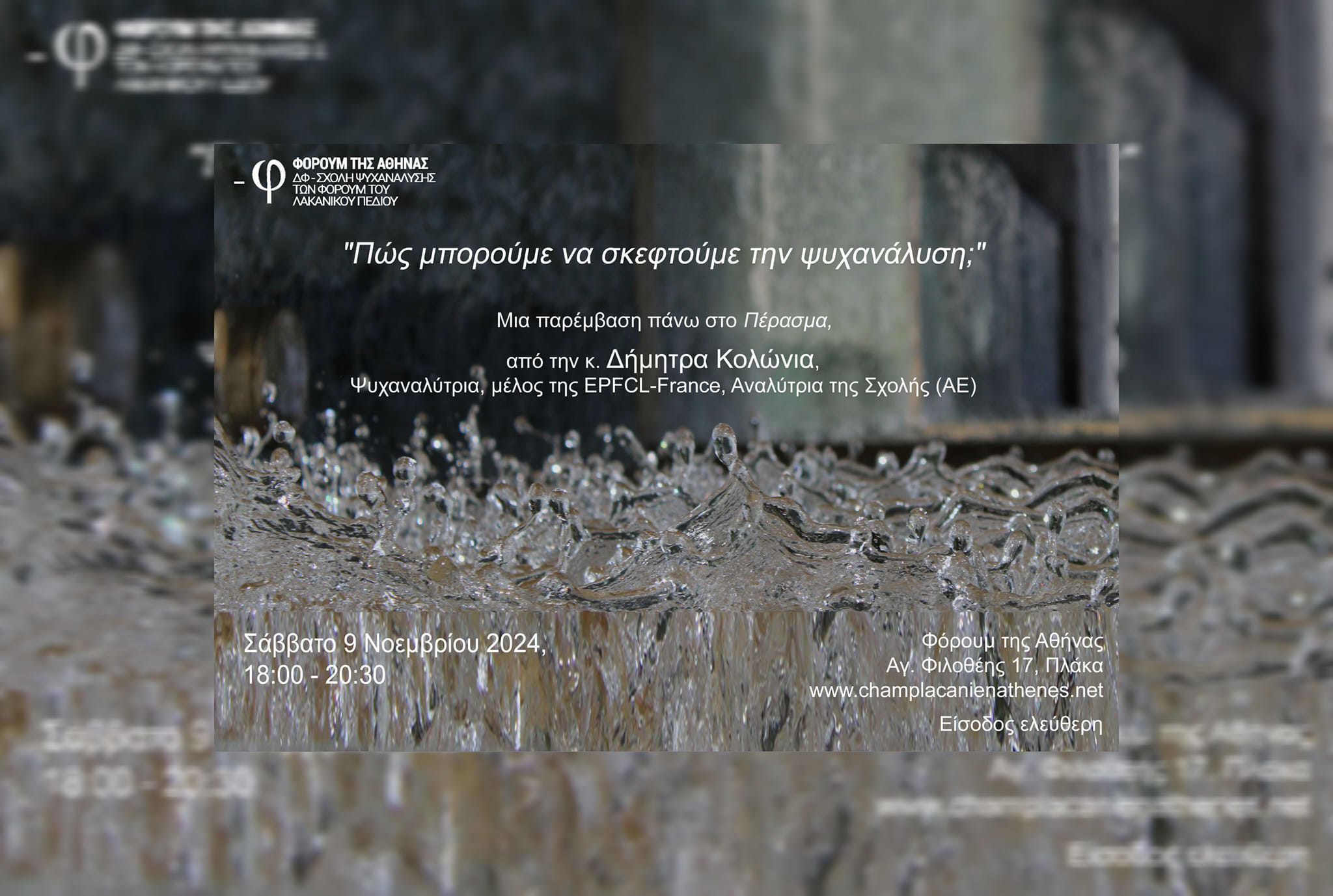 Σάββατο 06/04/2024 Συνέδριο της Ελληνικής Εταιρείας Συμβουλευτικής και Προσανατολισμού (ΕΛ.Ε.ΣΥ.Π.) Συμμετοχή στο στρογγυλό τραπέζι "Συμβουλευτική και Ψυχαναλυτική Πράξη: Μια Γόνιμη Συνάρθρωση", με την εισήγηση: "Η επιθυμία για γνώση" Έλενα Διέτη |
